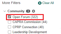 Drill down further using the More Filters dropdown. For example, select a community to limit your results to content only in posted within that community, or select from the Created dropdown to narrow to posts within a specific time period.